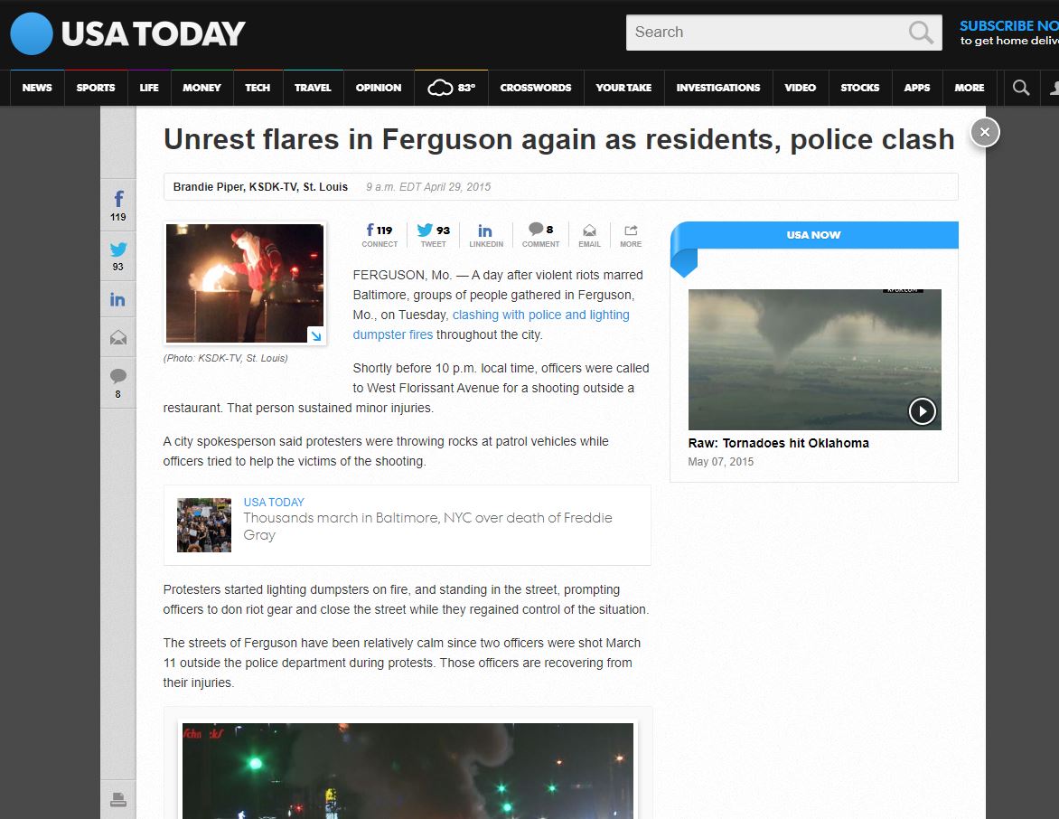Monday in Baltimore protesters looted and burned buildings, hurled projectiles at police, and beat a Baltimore Sun photographer in the street. The riots followed the funeral of Freddie Gray who died April 12 after sustaining a mysterious spinal cord injury while in police custody.