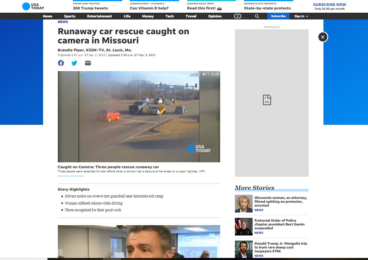 Three people were honored Monday night for a daring rescue of a runaway car in Arnold, Mo., that was caught on a red light camera.