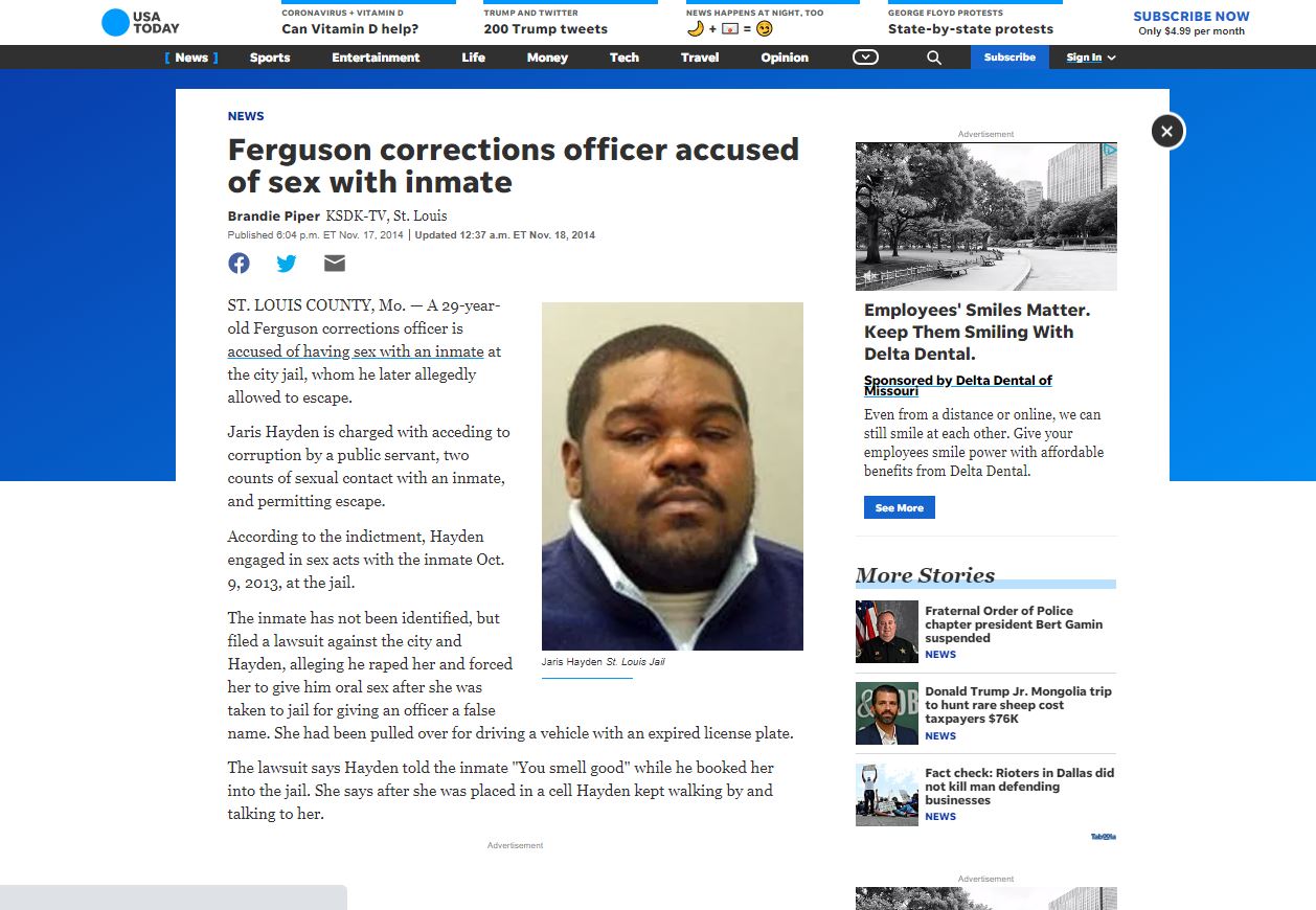 A 29-year-old Ferguson corrections officer is accused of having sex with an inmate at the city jail, whom he later allegedly allowed to escape.