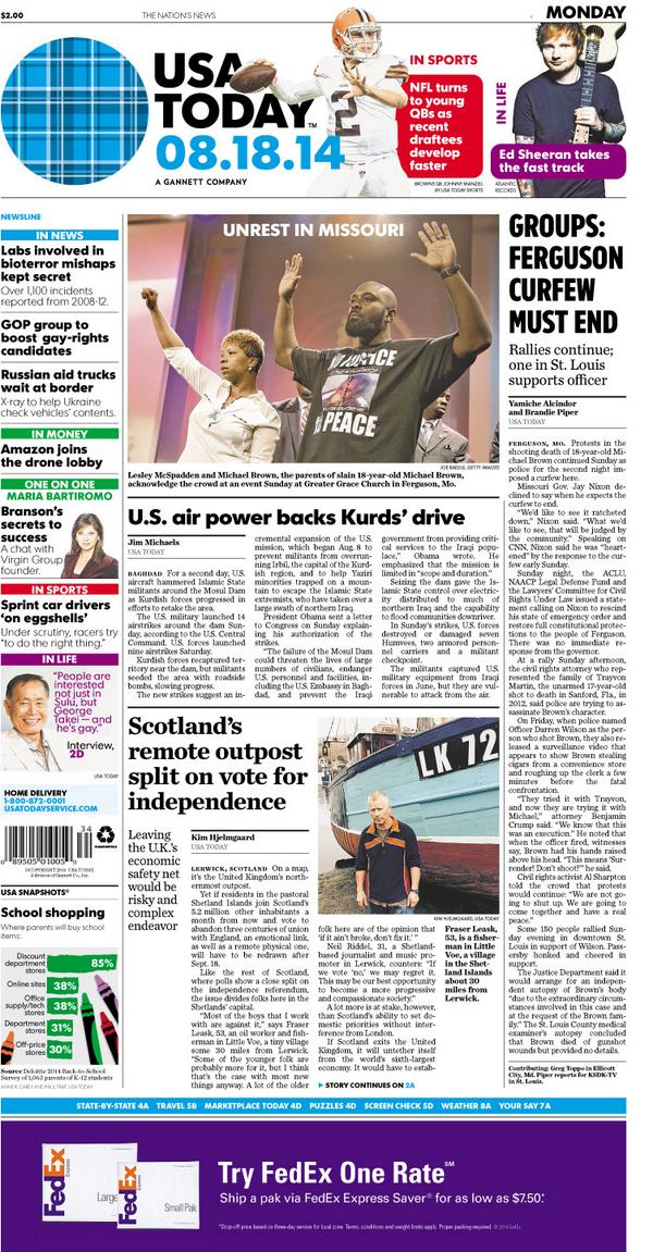 Image of my work on page 3A of the 9.18.17 edition of USA Today.