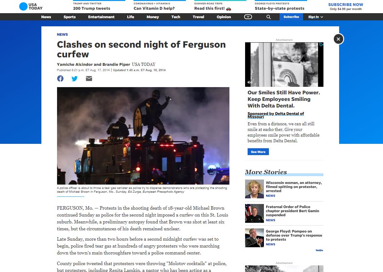 Protests in the shooting death of 18-year-old Michael Brown continued Sunday as police for the second night imposed a curfew on this St. Louis suburb. Meanwhile, a preliminary autopsy found that Brown was shot at least six times, but the circumstances of his death remained unclear.