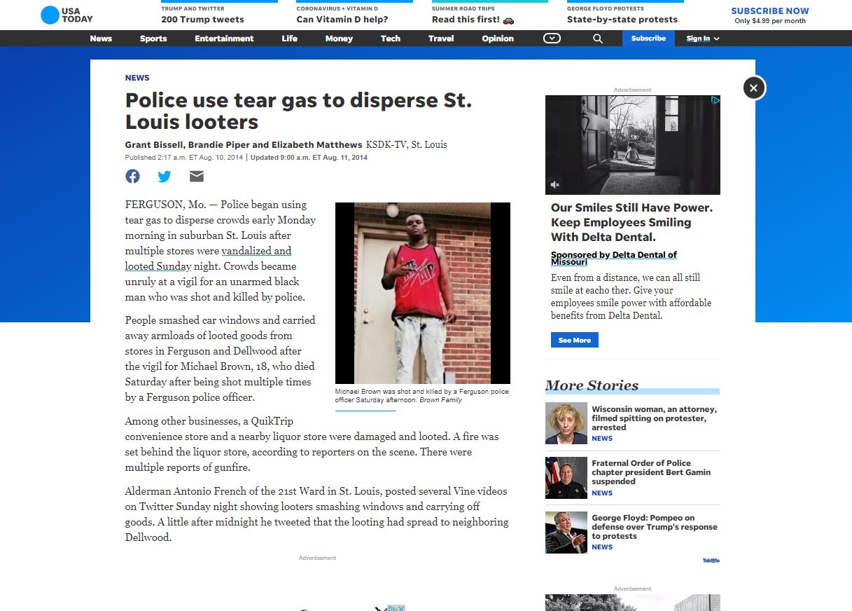 Police began using tear gas to disperse crowds early Monday morning in suburban St. Louis after multiple stores were vandalized and looted Sunday night. Crowds became unruly at a vigil for an unarmed black man who was shot and killed by police.